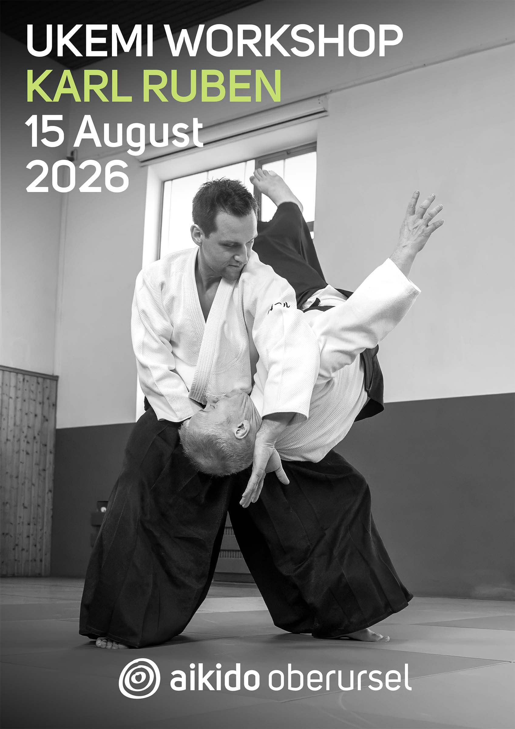 Karl Ruben‘s aikido is dynamic, passionate and precise. The joint movement of uke and tori is at the heart of his research. As he likes to practise at a higher frequency, his teaching puts a special focus on intelligent ukemi – which is the focus topic of this workshop day.